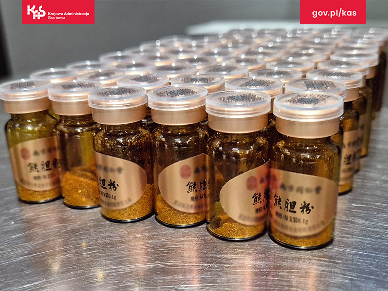 - Mazowiecka Krajowa Administracja Skarbowa (KAS) zatrzymała 60 fiolek z żółcią niedźwiedzia.