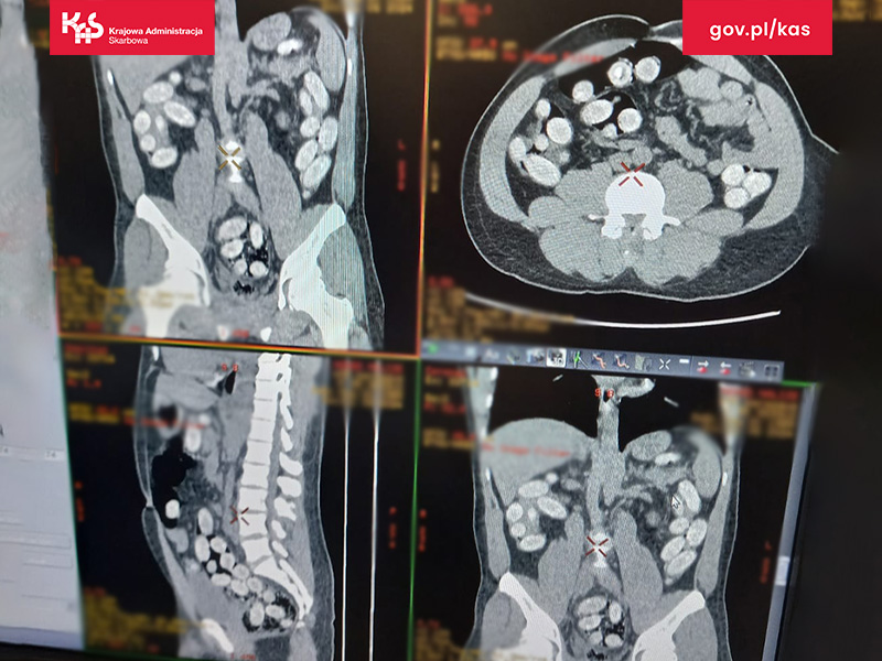 Mężczyznę przewieziono do szpitala. Wyniki tomografii komputerowej przewodu pokarmowego potwierdziły wewnątrzustrojowy przemyt środków odurzających.