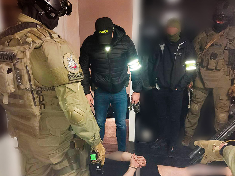 Funkcjonariusze Służby Celno-Skarbowej z Mazowieckiego Urzędu Celno-Skarbowego w Warszawie przy wsparciu Samodzielnych Pododdziałów Kontrterrorystycznych Policji z Wrocławia i Opola wzięli udział w akcjach służb w 4 lokalizacjach, w tym na Dolnym Śląsku i w woj. świętokrzyskim.
