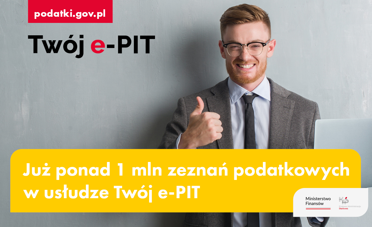 „Kolejny raz podatnicy postawili na Twój e-PIT. Usługa cieszy się jeszcze większą popularnością niż rok temu. Mamy już ponad 1 mln złożonych zeznań w systemie" – informuje Szef Krajowej Administracji Skarbowej Marcin Łoboda.