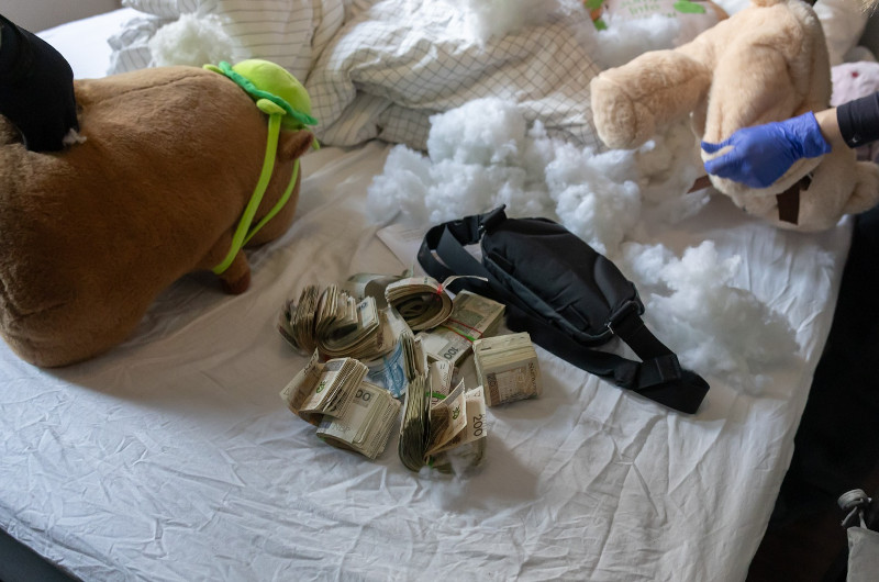 • Pieniądze były ukryte w pluszowych zabawkach.