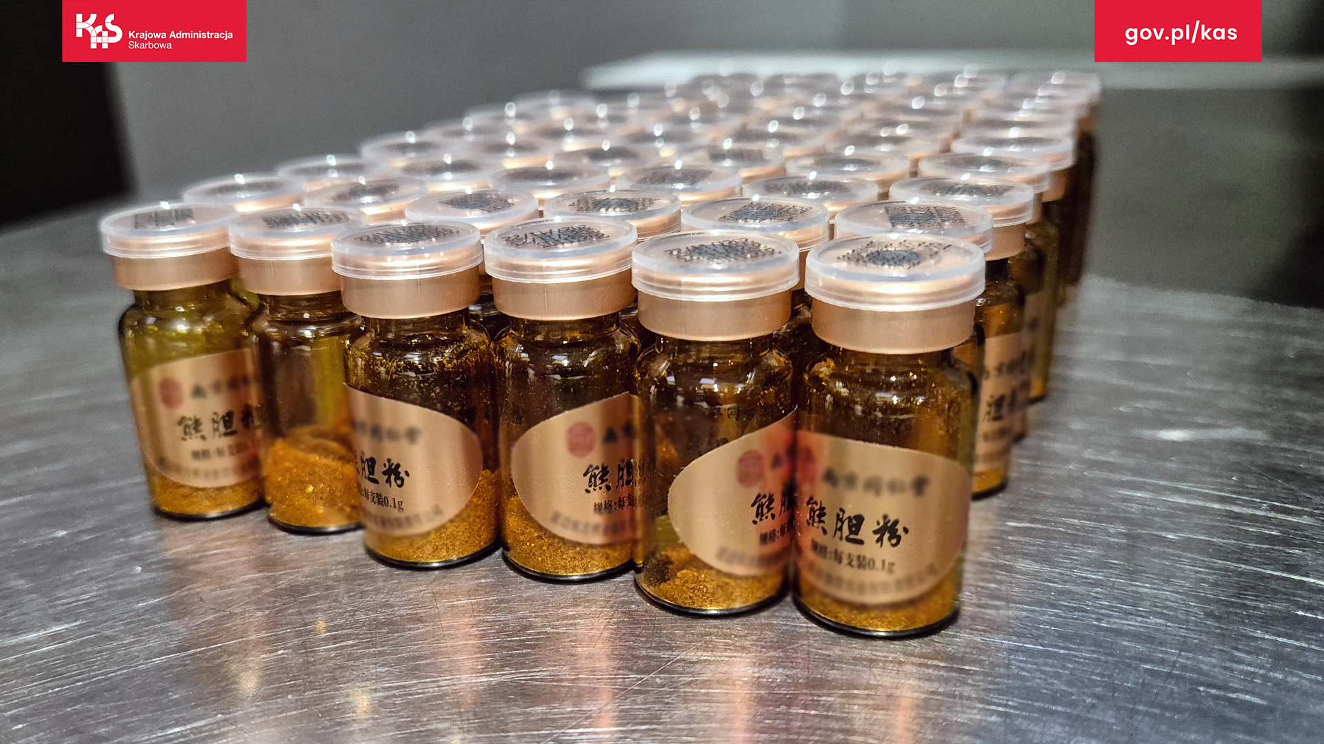 Okazy CITES w postaci sproszkowanej żółci niedźwiedziej, znaleźli funkcjonariusze SCS w bagażu podróżnej przylatującej z Chin. Wyjaśniła, że 60 fiolek z żółcią niedźwiedzią kupiła w chińskiej aptece i przywiozła jako lek tradycyjnej medycyny chińskiej dla znajomego chorującego na wątrobę.