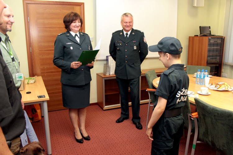Kolejną atrakcją dla chłopca, była wizyta przewodnika z psem służbowym labradorką Locą. Spotkanie z Krystianem zakończyło się w służbowym radiowozie SC, w którym zapoznał się ze specjalistycznym sprzętem do kontroli celnej oraz sygnalizacją dźwiękową.
